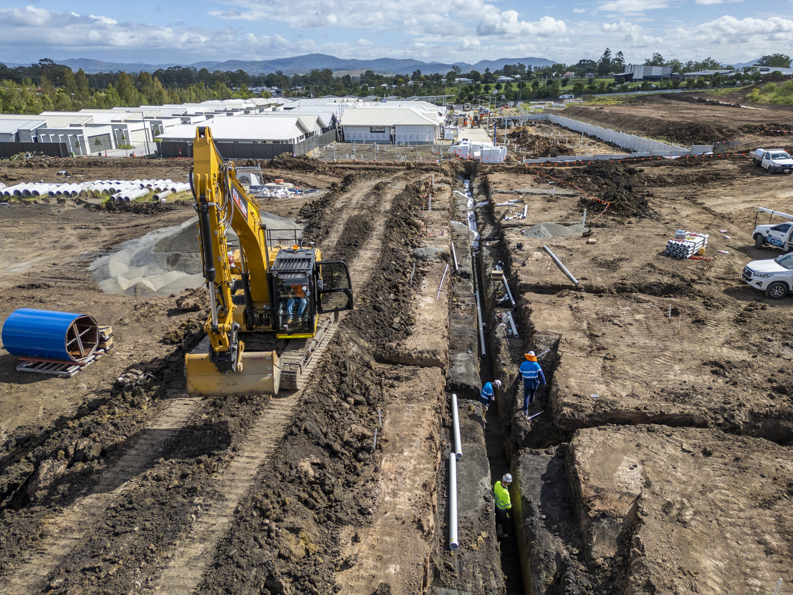 - Scope: Bulk earthworks, sewer, stormwater, water works, internal & external roadworks